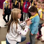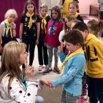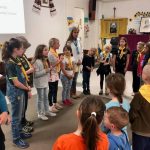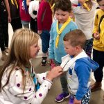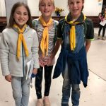 «Новацтво станиці Вікторія сьогодні поповнилося новими учасниками! Меланія не тільки з гордістю приєдналася сама, але й допомогла своєму молодшому брату Яремі, який сьогодні отримав хусточку пташеняти! Ніна, Калина, Гретхен та Богдан навчались пластового впоряду.